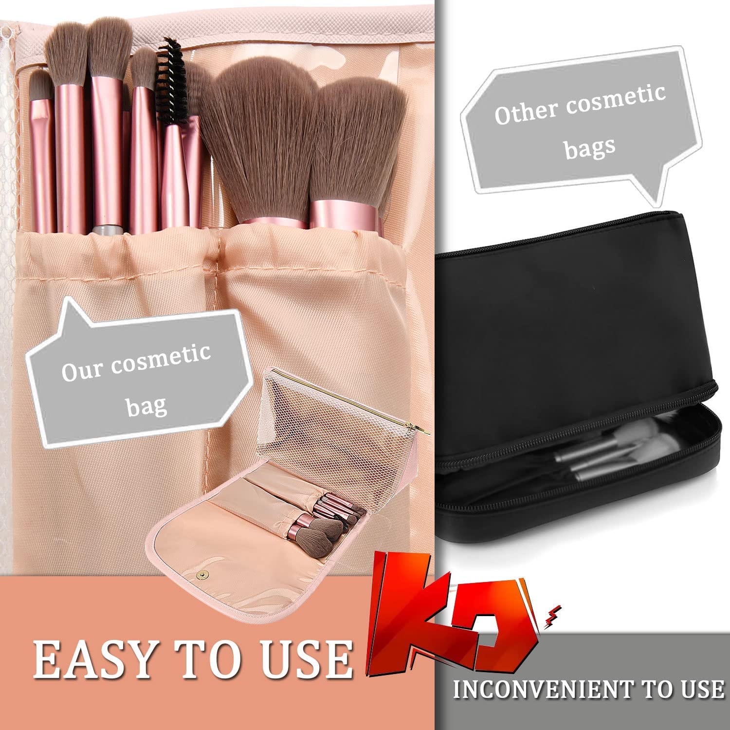 ?LARGE-CAPACITGY COSMETIC BAG :The large capacity travel cosmetic bag is designed with multiple divisions and compartments, which can store not only your cosmetics,makeup bursh,essential oils, Toiletries kits, valuables, etc. It can be organized to accommodate the cosmetics and makeup tools you need;