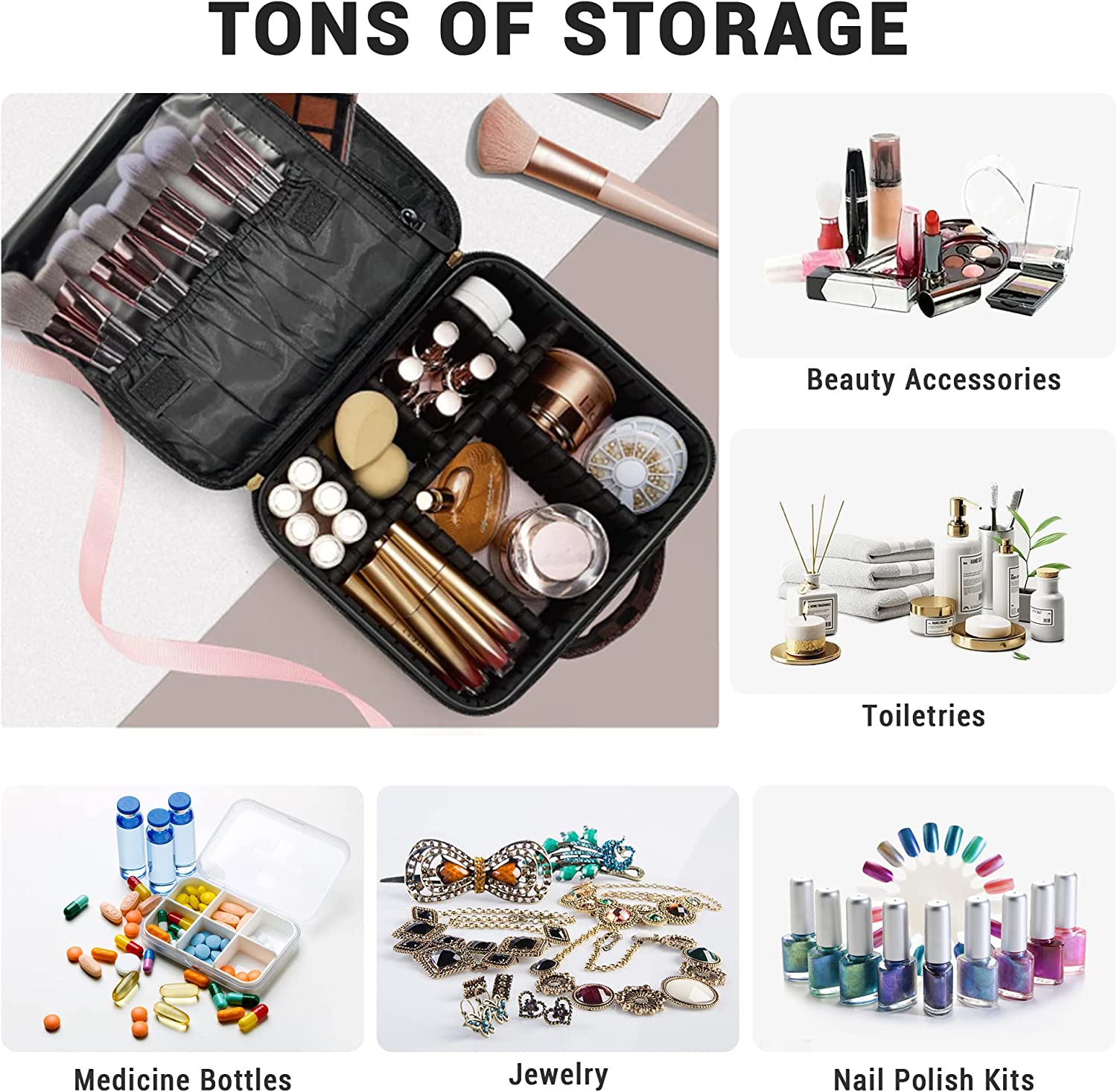 • 【Roomy Enough】Dimensions (L*W*H)10.4 x 3.6 x 9.2 inches, literally huge main compartment with adjustable partition. Large capacity makes it easy to consolidate your travel toiletry bags, full size brush, glasses, cosmetics, makeup tools, lipstick, eye shadow, or men's shaving kit etc.