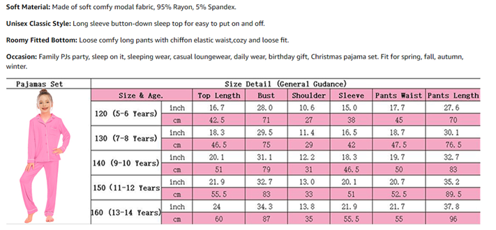 Material: Made of soft comfy modal and cotton fabric. Cozy, comfortable, skin-friendly, lightweight and natural breathable. Fit for 5-14 years girls and boys.