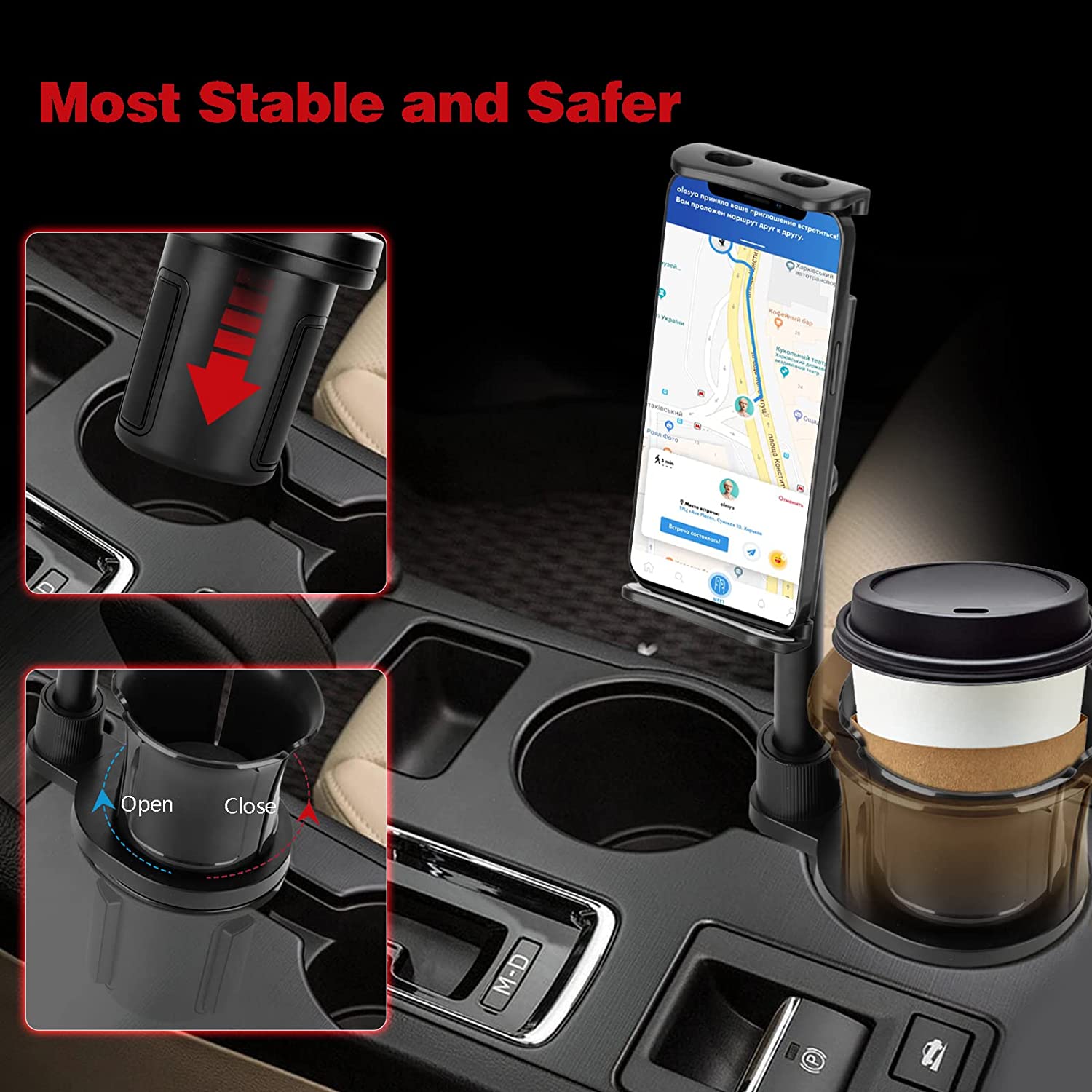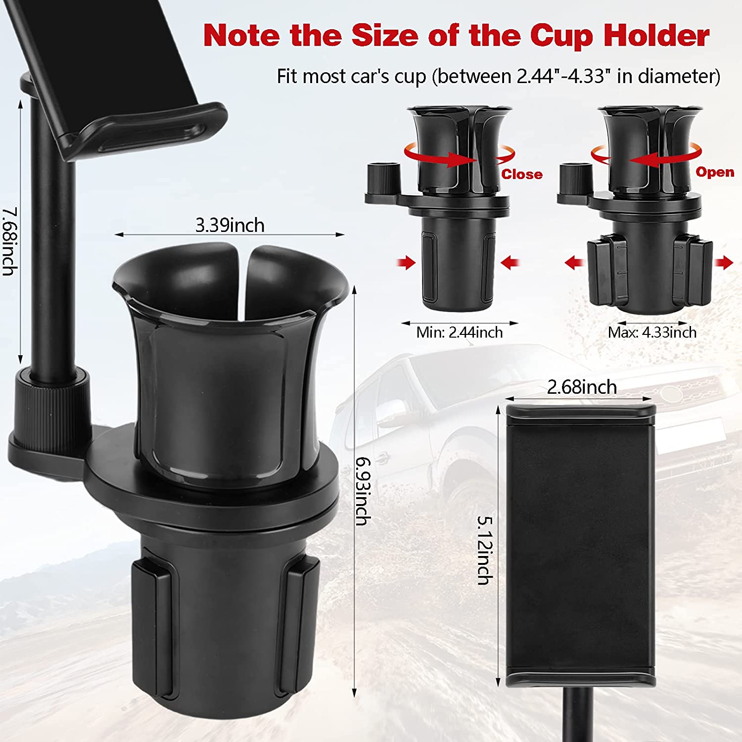 • 【Detachable Design And Use At Will】The cup holder expander and phone mount are detachable. According to the instruction manual, rotate the rod counterclockwise to remove the pole and phone mount. After disassembly, it is a complete cup holder expander, which can hold your cups well and save more space in the car. You can choose different usage methods according to your preferences. Please refer to the product size carefully before purchasing to determine whether it is suitable for your car.