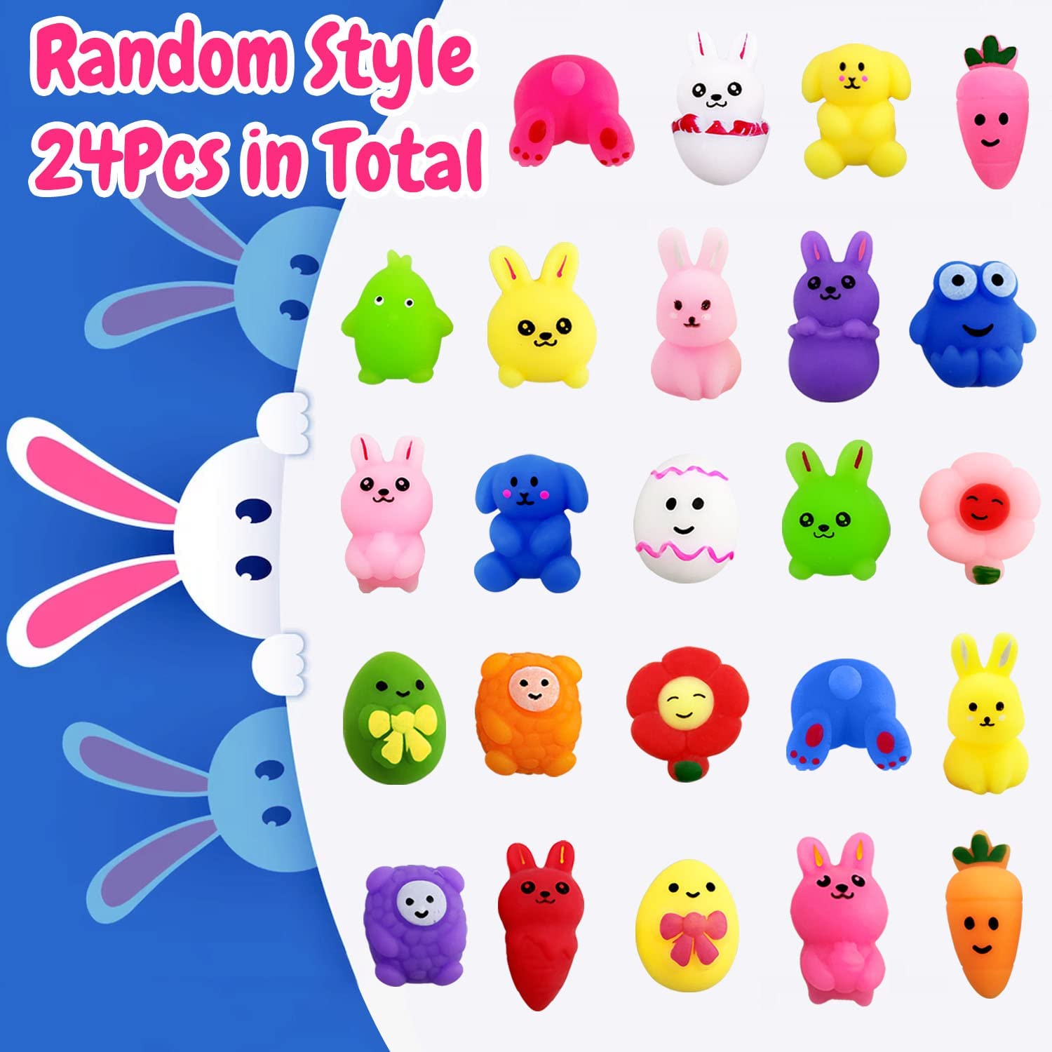• ?【Ideal Easter Gifts】The 24 pcs easter mochi squishies are perfect for Easter basket stuffers, Easter basket fillers, Easter gifts, Easter toys, party favors, birthday gifts, school rewards, classroom prizes , Easter goodie bags.