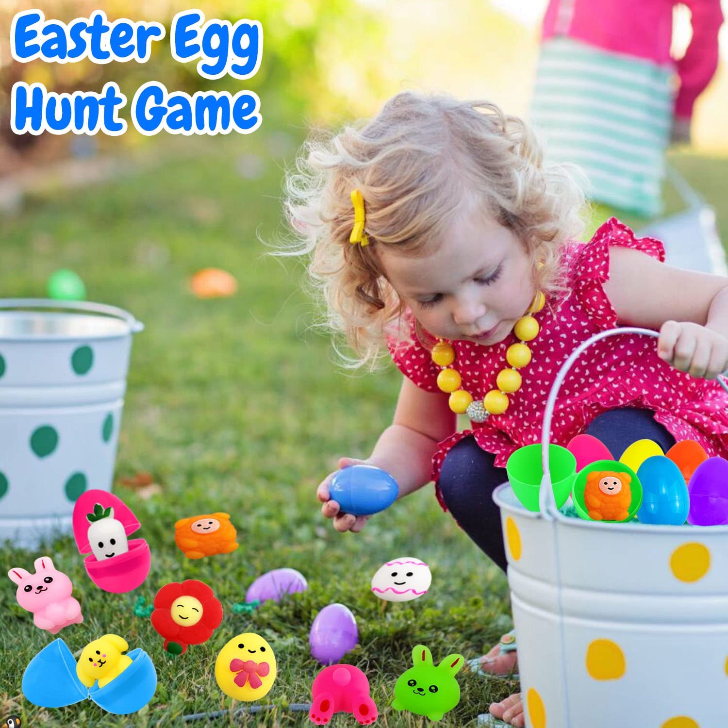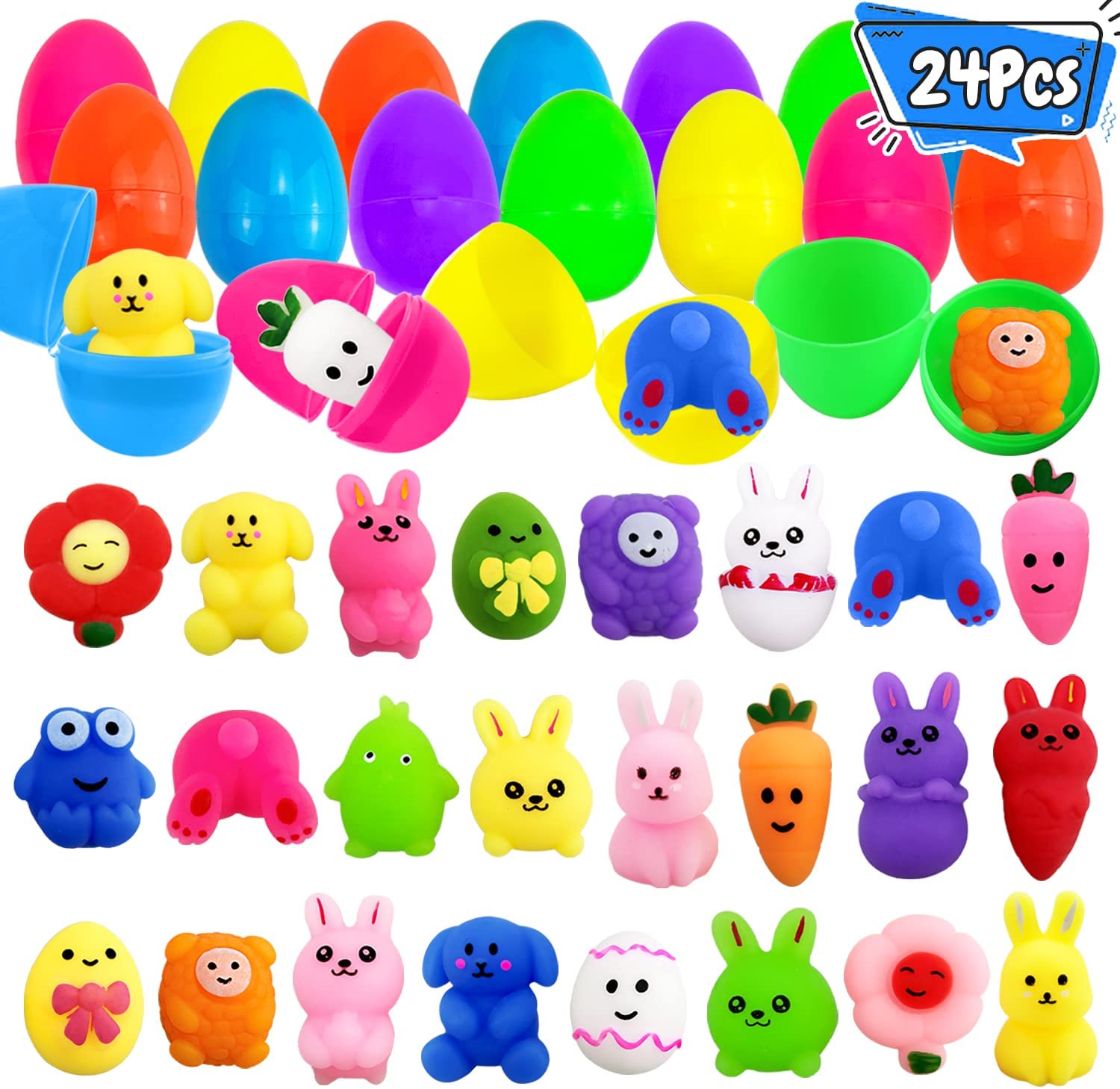 • ?【Easter Egg Hunts】Each plastic egg is filled with 24 easter squishy stress reliever toys. perfect for boys and girls easter egg hunts. Plenty of eggs to decorate with or hide around the yard.