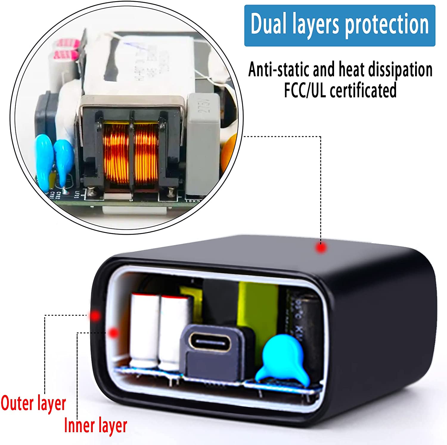⚡ Double Layers Protection : This samsung 45w USB-C charger has an extra inner protective case which can not only protect the PCB'A better than usual ones but has the function of doing anti-static and heat dissipation. And this samsung 45w charger has passed UL test.