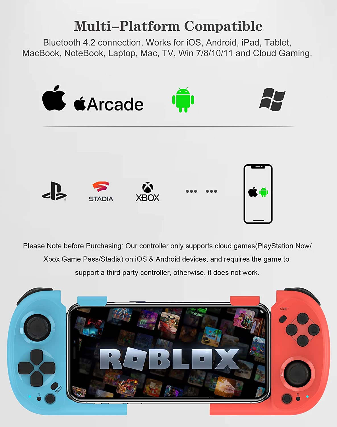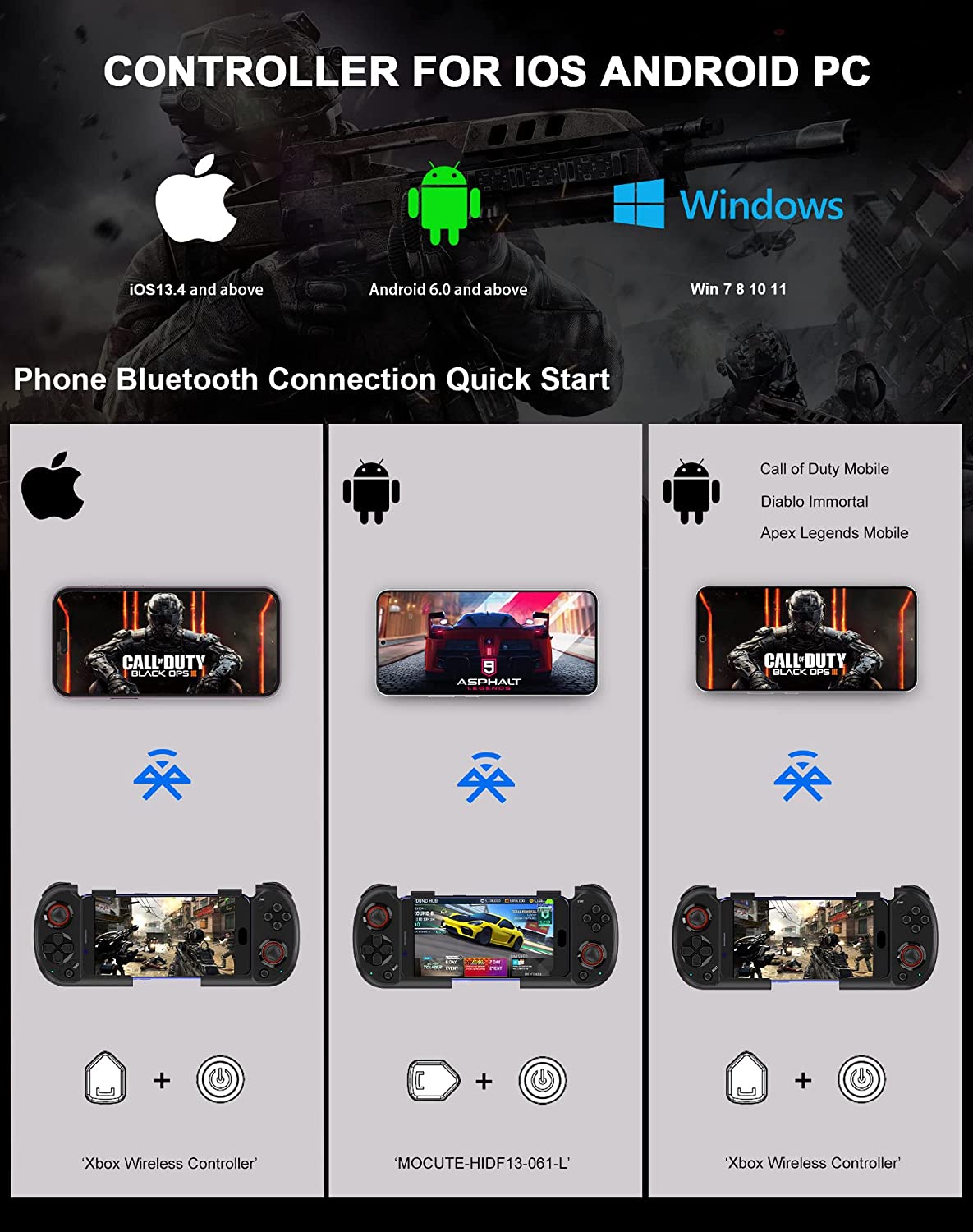 • ?【Universal Compatible】The mobile controller supports most iPhone, iPad, Android, Tablet, PC. (Supported systems: iOS 13.4+/ Android 6.0+)