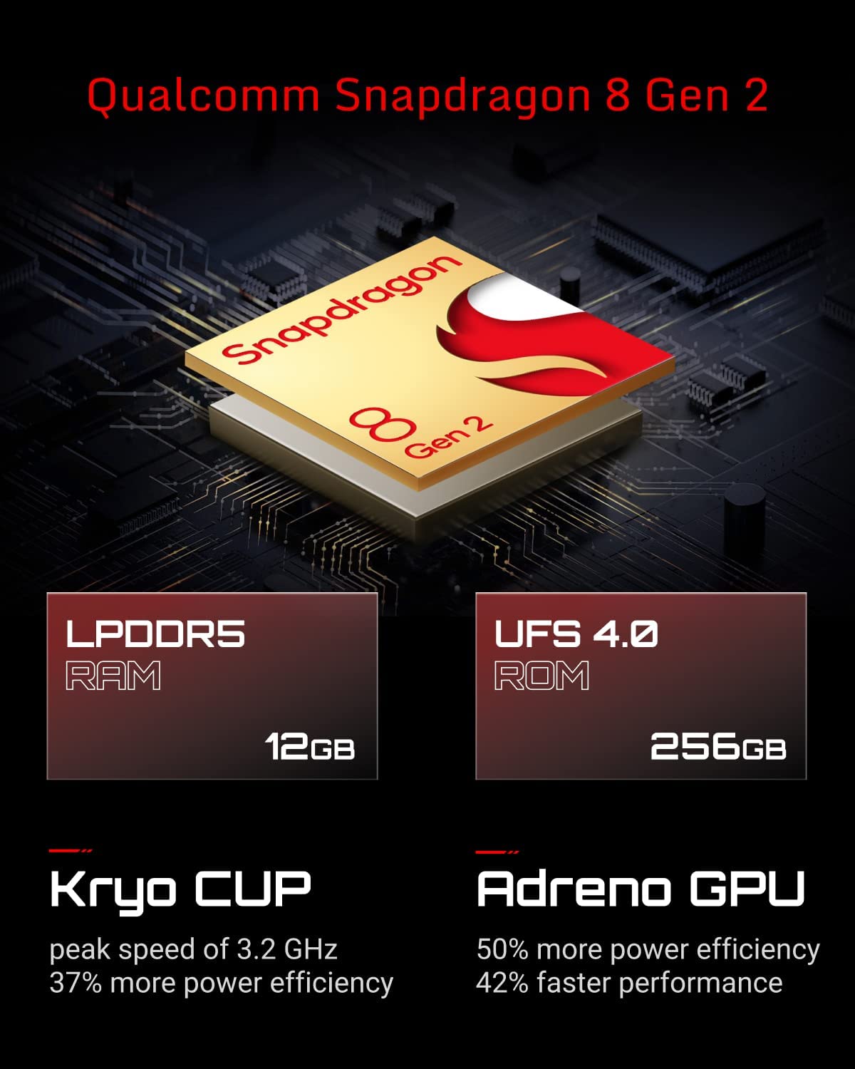 • 【Latest Chip and Larger Storage】The Gaming Smartphone has the latest Qualcomm Snapdragon 8 Gen 2 (UFS 4.0 + LPDDR5X). Play your favorite games with ease with the raw power of the new CPU clocking in at nearly 3.2GHz and enjoy Triple-A graphics thanks to the fast rendering power of the GPU. 12GB RAM + 256GB ROM provides not only a fun gaming experience and effects, also large storage space for game downloads.