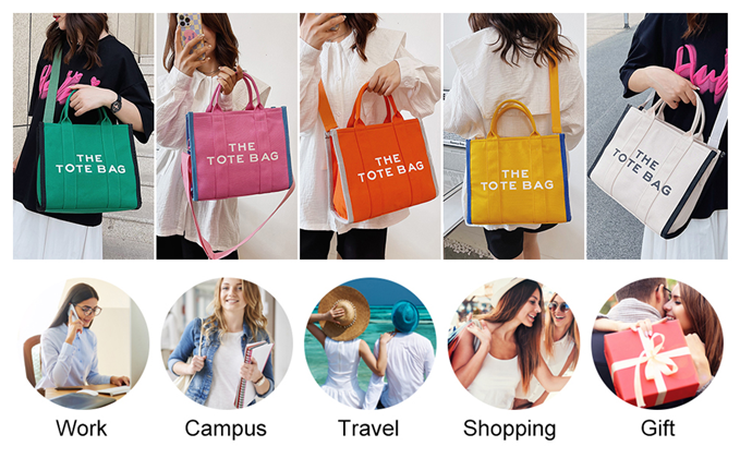 The tote bag for Women is a must-have for women, simple and spacious utilitarian design with a strap , it is widely used for putting all your belongings in. Made from sturdy canvas and styled with bold block lettering, simple and fashionable, meet the demand of consumers.