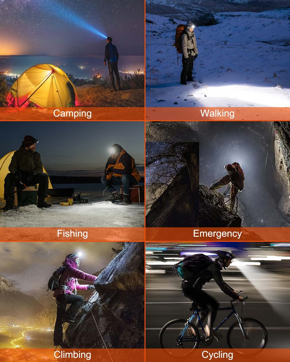 • Long Battery Life: The camping headlamps for adults can be used for 10+ hours according to your choice of different modes, which can satisfy our daily needs. The 6 pcs AAA battery provides super protection. Nice camping gear!
