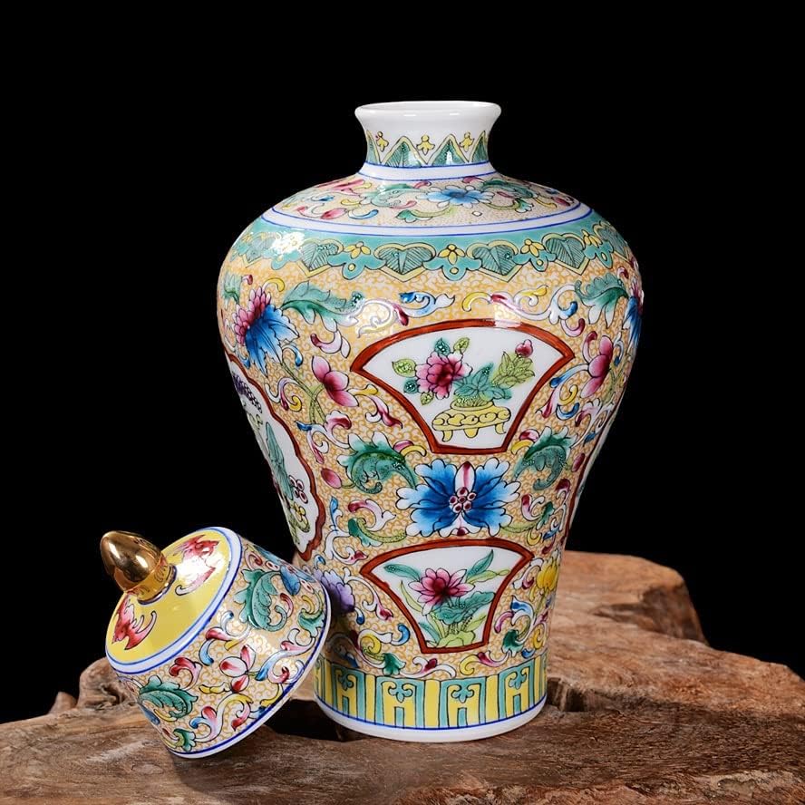 HOUKAI Antique Chinese Style Noble Enamel Porcelain Nobility Palace Decoration Handpainted Gold Ceramic Ginger Jar