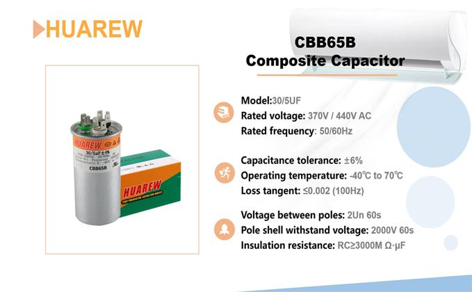HUAREW 30+5 uF ±6% 30/5 MFD 370/440 VAC CBB65 Dual Run Start Round Capacitor for Condenser Straight Cool or Heat Pump Air Conditioner or AC Motor and Fan Starting