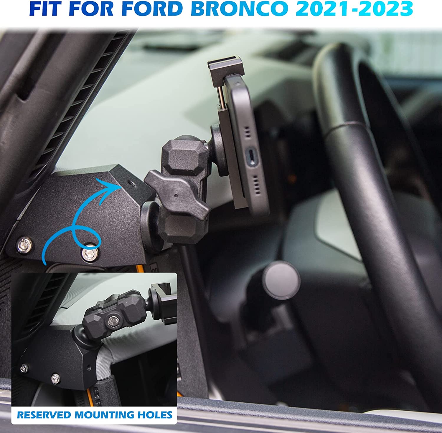• 【Application】Dashboard Cell Phone Mount compatible with 2021 2022 2023 Ford Bronco 2 Door & 4 Door. It is a good companion for you on the driving road. (please note not applicable to Bronco Sport)