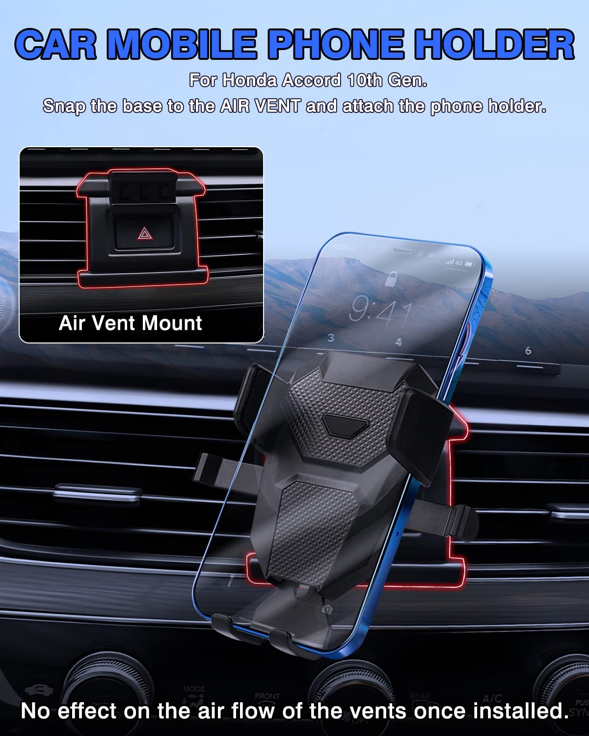 【Custom Fit for 10th Gen. Accord Accessories】The phone holder fits for Honda Accord 2018 2019 2020 2021 2022 Accessories. Special mount fits perfectly to the dash air vent, very secure, doesn’t obstruct buttons or any functions.