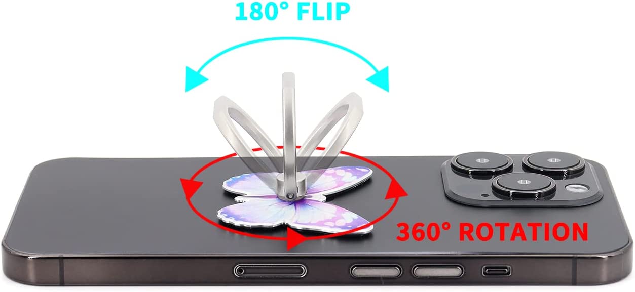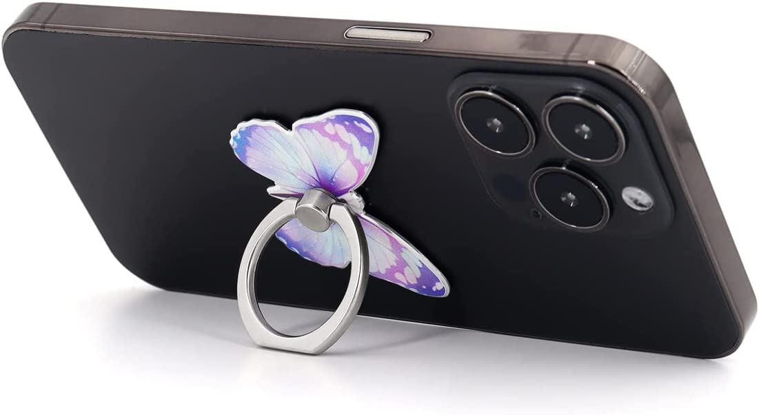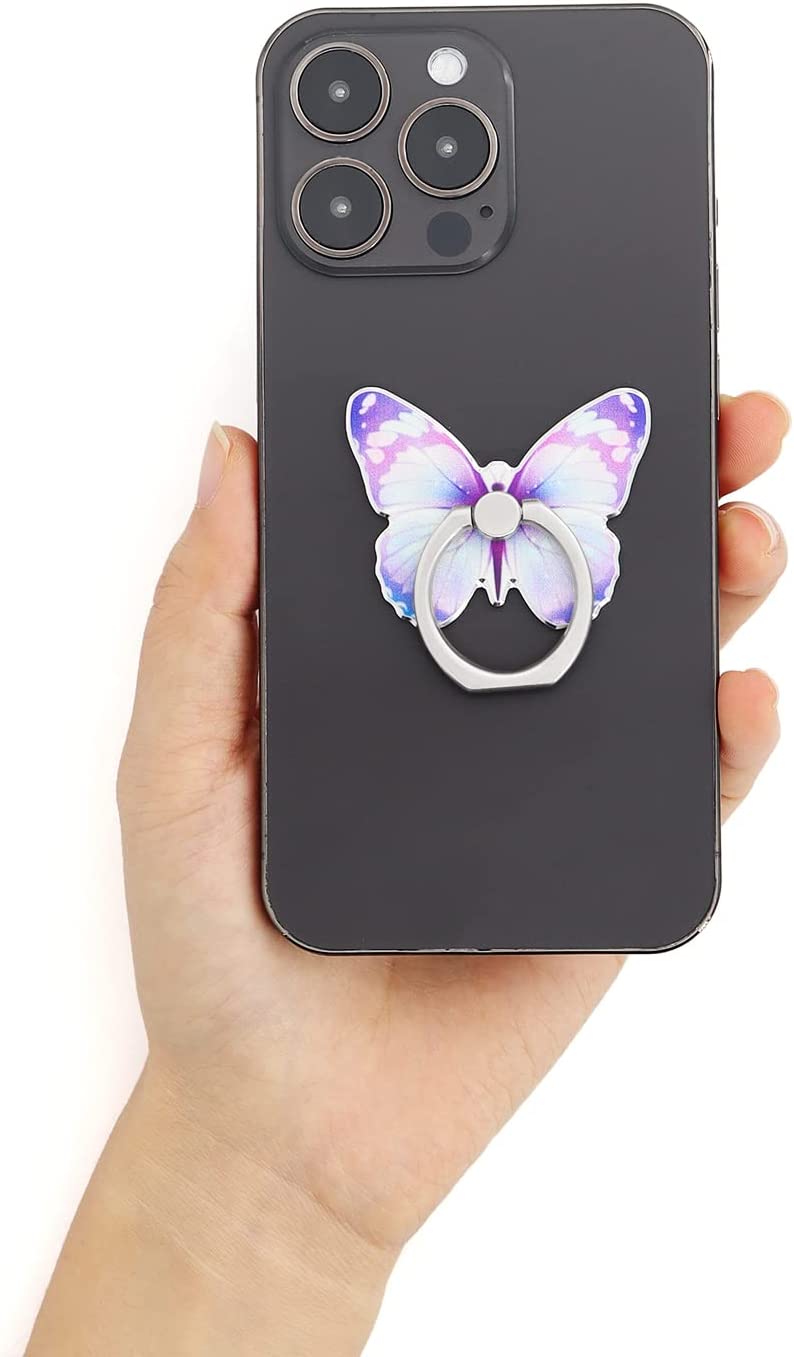 LaMignonne Butterfly Cell Phone Ring Holder Finger Ring Grip Stand 360° Rotation 180° Flip Universal Kickstand Compatible with All Smartphones (Lilac)