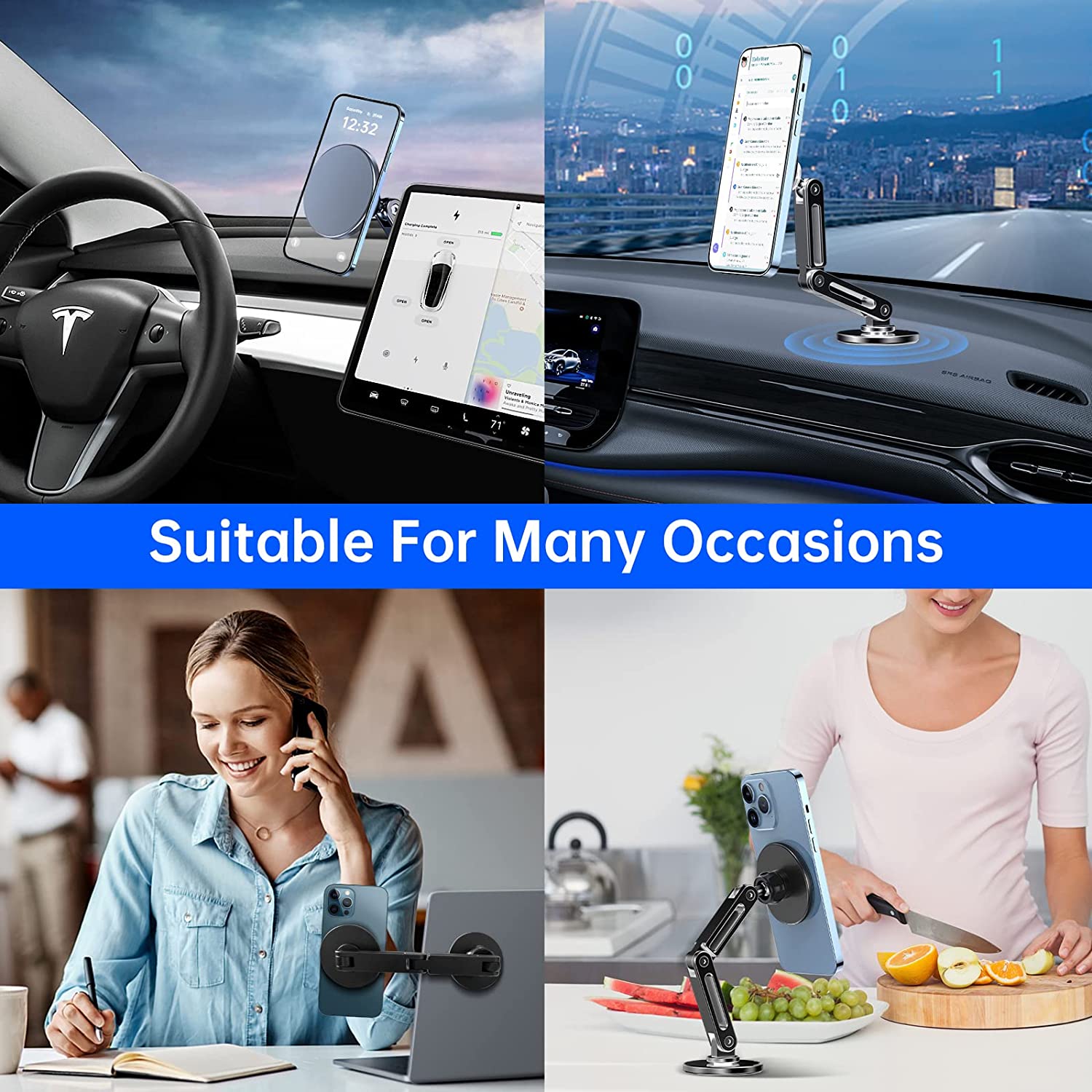 • 【More Mounting Options】This tesla iphone mount for tesla model 3 accessories and tesla model y accessories, Easy to rotate, Fold and hide, Horizontal and vertical adjustment, Fully adjustable design, 360-degree rotation, Suitable for your multi-angle use, And can be installed on the steering wheel/dashboard Multiple locations behind the panel/center console without obstructing the line of sight for safer navigation.