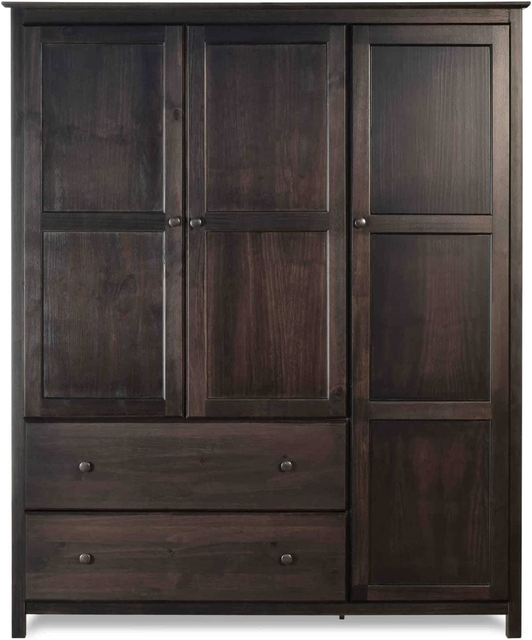 Grain Wood Furniture Shaker 3-Door Wardrobe, Expresso