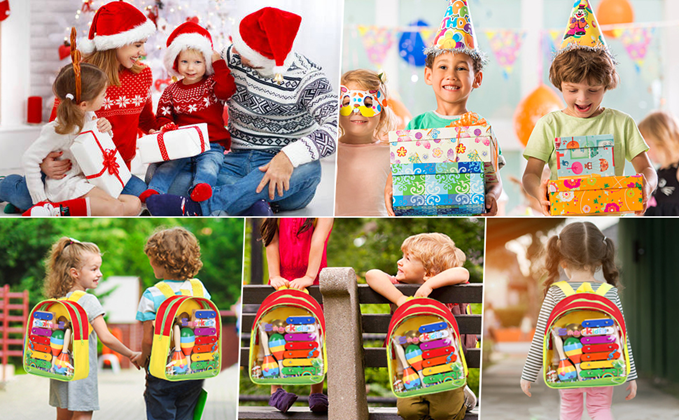 Smarkids children's musical instruments come with nice carrying backpack with bright colors, kids will love to carry. Great for home, classroom and other indoor/outdoor activities. Gift option provided and it will be a great gift for kids.