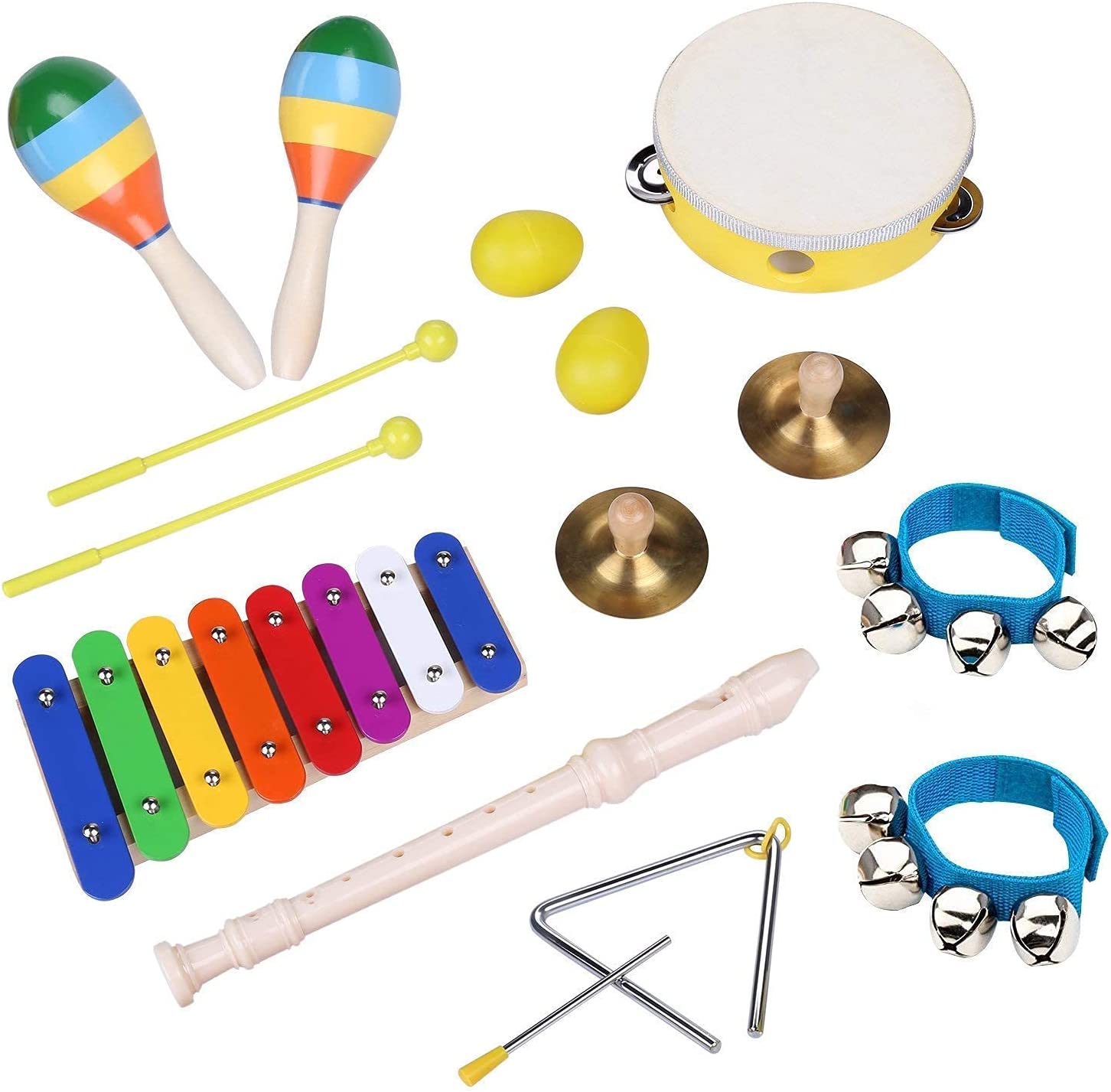Smarkids toddler instruments are all designed to bring kids fun during learning and playing. This musical toys set is a real kids musical instruments set, including percussion instruments like wooden xylophone, maracas, egg shakers & tambourines, also including wind instrument flute. Not only they could produce magic rhythms, but also made wonderful melody. With suitable size, they are the best preschool kids instruments for children ages 3 and up.