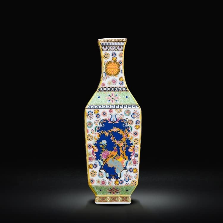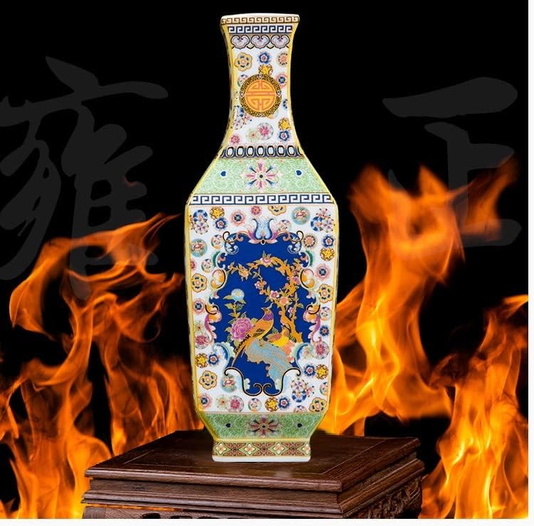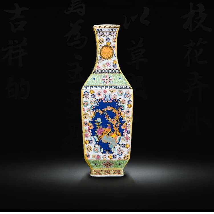 ZHYH Jingdezhen Antique Enamel Square Vases Flowers and Birds Pattern Ancient Porcelain