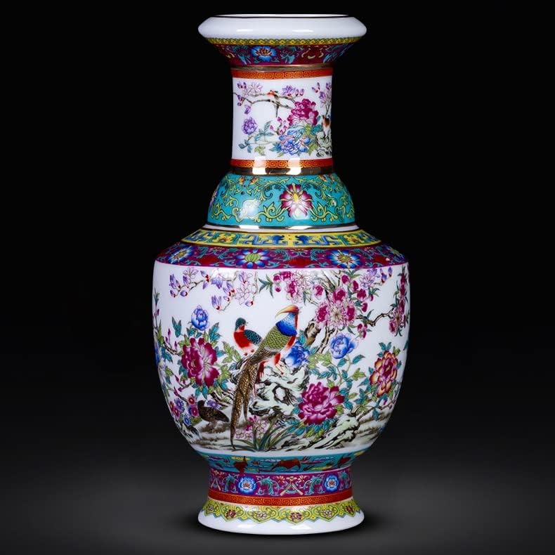 ZSEDP Jingdezhen Ceramic Antique Enamel Flower Vase Flower Arrangement Decoration Chinese Style Living Room