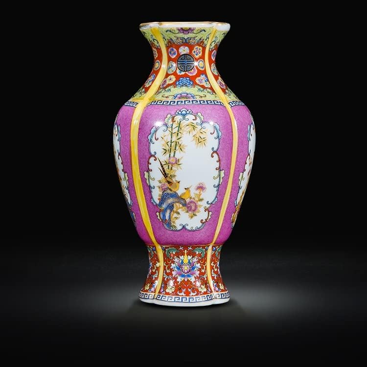 ZHYH Jingdezhen Antique Enamel Square Vases Flowers and Birds Pattern Ancient Porcelain