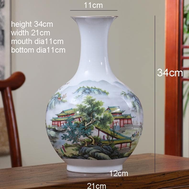 ZSEDP Antique Jingdezhen Vase with Flowers and Landscape Patterns Ceramic Table Vase Porcelain Decorative Vase