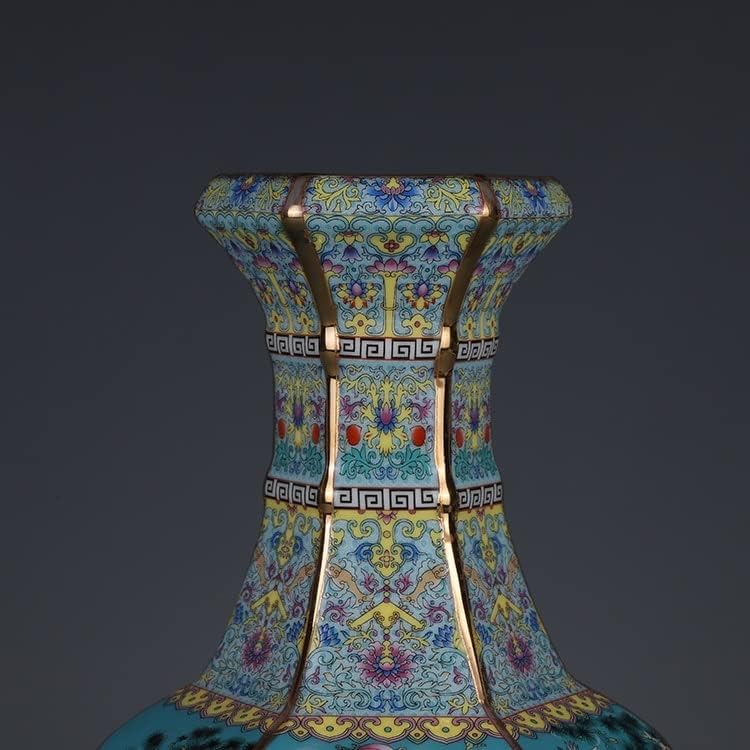 ZSEDP Enamel Hexagons Vase with Flower and Bird Pattern Jingdezhen Antique Ceramic Vase
