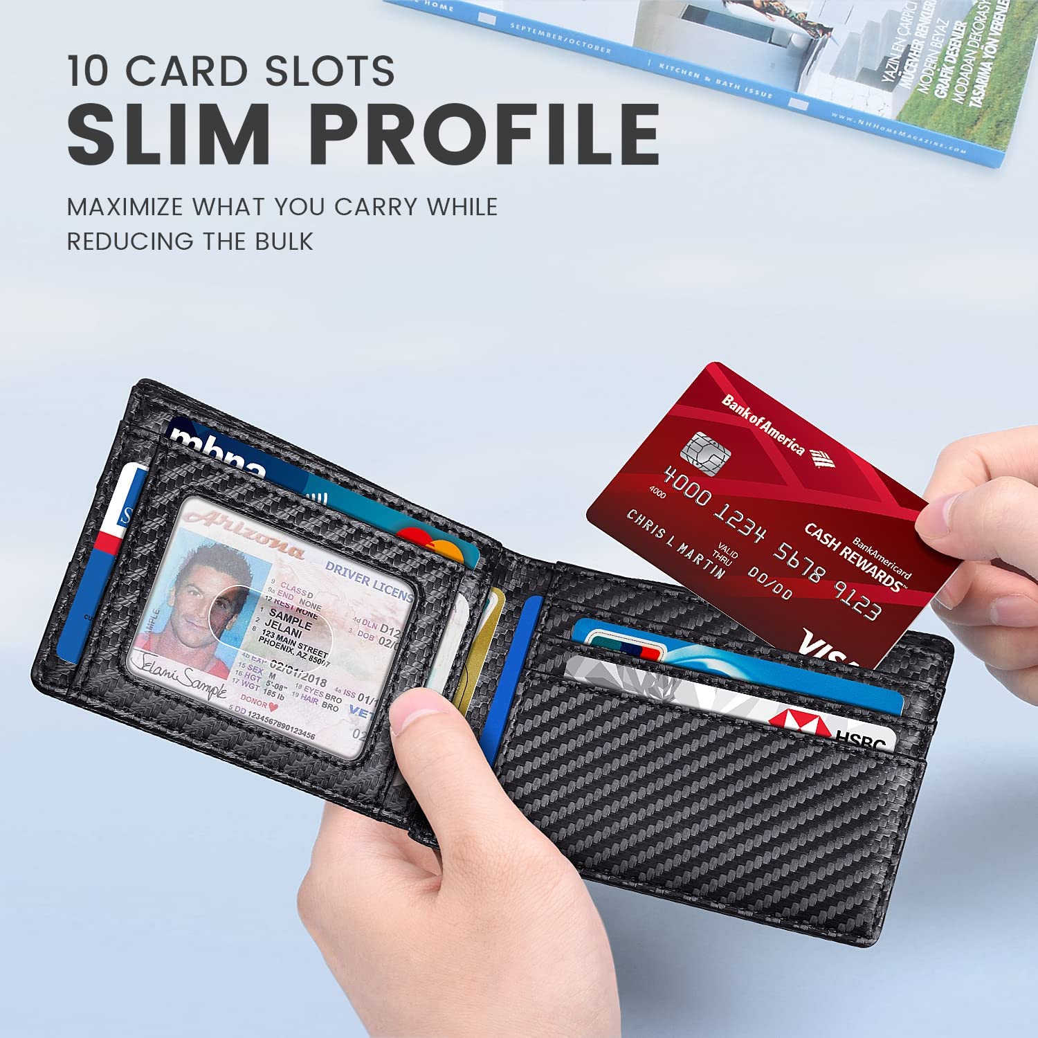 • ???? ??????? ?????? ???????? - thinking of going with a wallet that is more slim, but doesn't want to give up space in the new compact metal wallets out there? You won’t be disappointed with this wallet. We kept the dimensions of our slim wallet to 4.4" x 3" x 0.5". Our Wallet offers 11 card pockets and 1 bill compartment to meet everyday needs. Comfortable in the front and rear pockets.
