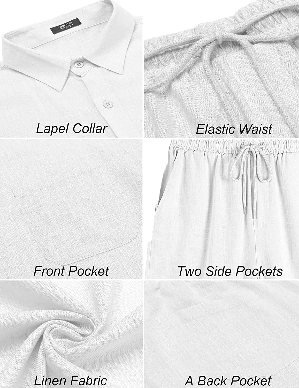 2-Piece short sleeve set made of linen materials, durable enough for your daily wearing. Men's casual pants come with an elastic waist and adjustable drawstrings for an easy and relaxed fit; Side pockets let you keep essentials close, such as keys, phones.