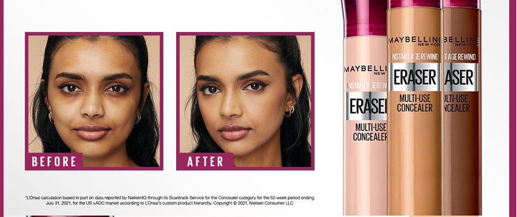 Maybelline Instant Age Rewind Concealer: America's Number 1 Concealer; Erase the look of dark circles, correct the appearance of redness and brighten the look of dull skin with Instant Age Rewind Eraser multi-use concealer