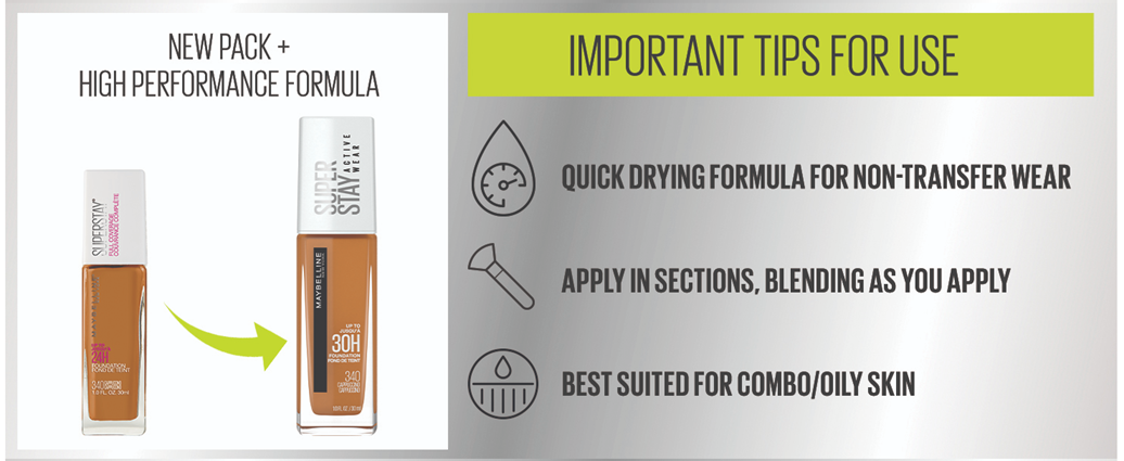 - Maybelline Super Stay Full Coverage Foundation Make Up: Full coverage foundation that sets a new standard with up to 30 hour performance wear; Glides on smooth, feels light as air and stays put no matter what; Quick dry forumla suitable for all skin types