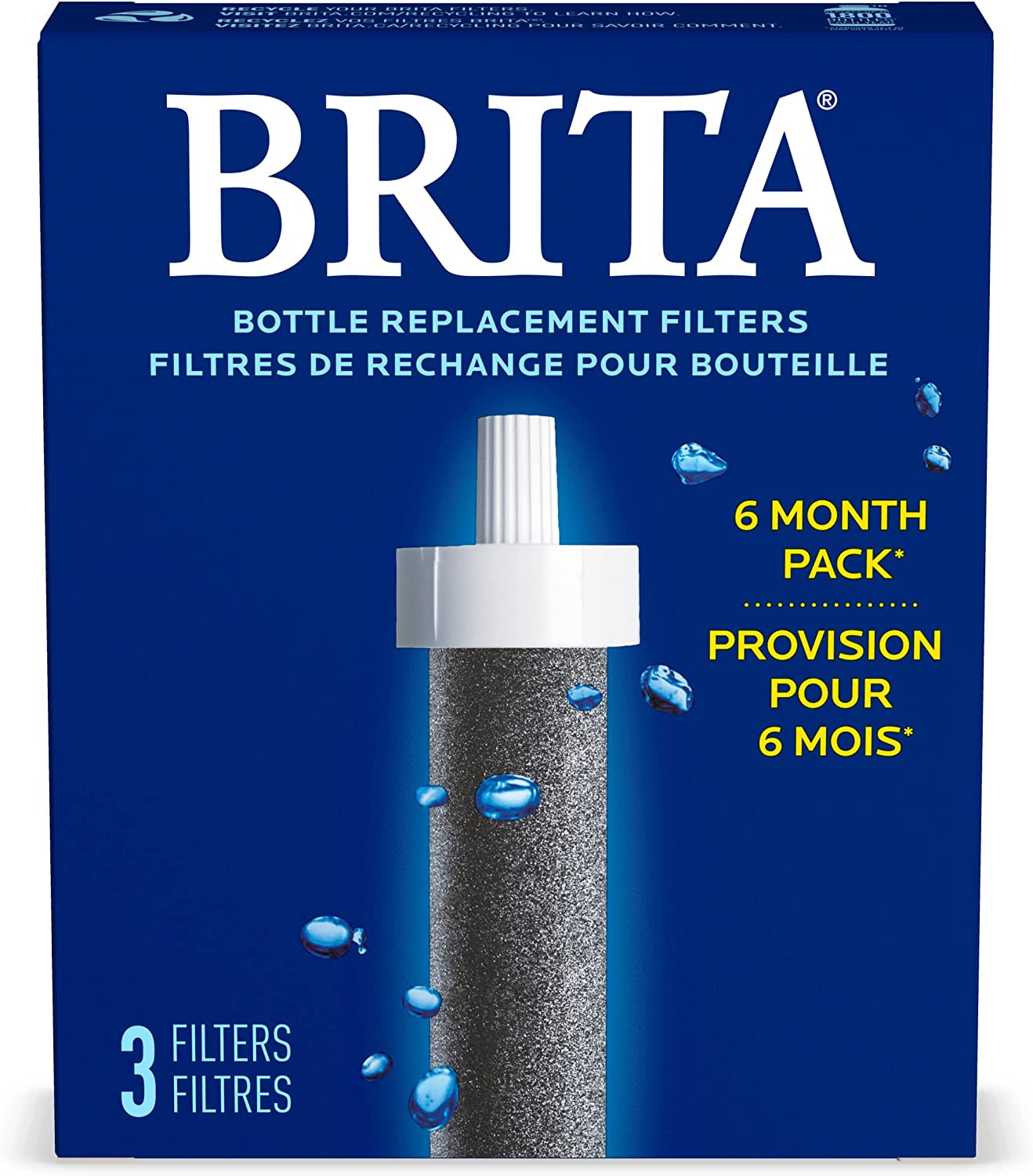 Brita Water Filter Replacements for Water Bottles, Lasts 2 Months, Reduces Chlorine Taste and Odor, 3 Count