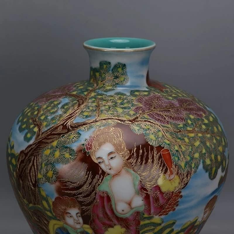 ZHYH Jingdezhen Antique Enamel Square Vases Flowers and Birds Pattern Ancient Porcelain
