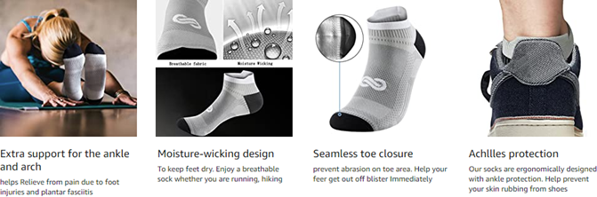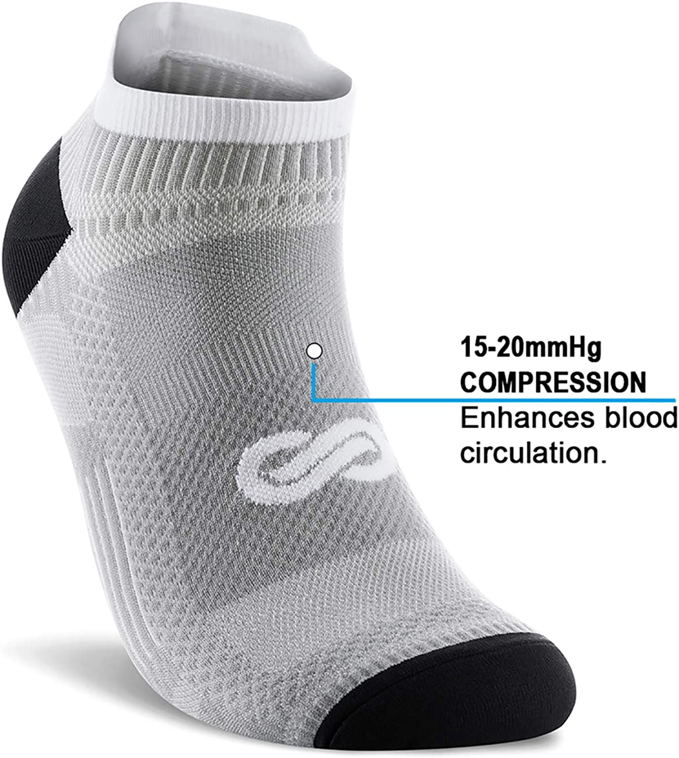 • [360 PROTECTION FOR YOUR FEET] The no show compression socks with 3d circular progressive pressure design provide you with permanent all-around protection, ensure your feet at the right angle to reduce sports injuries while providing ankle support