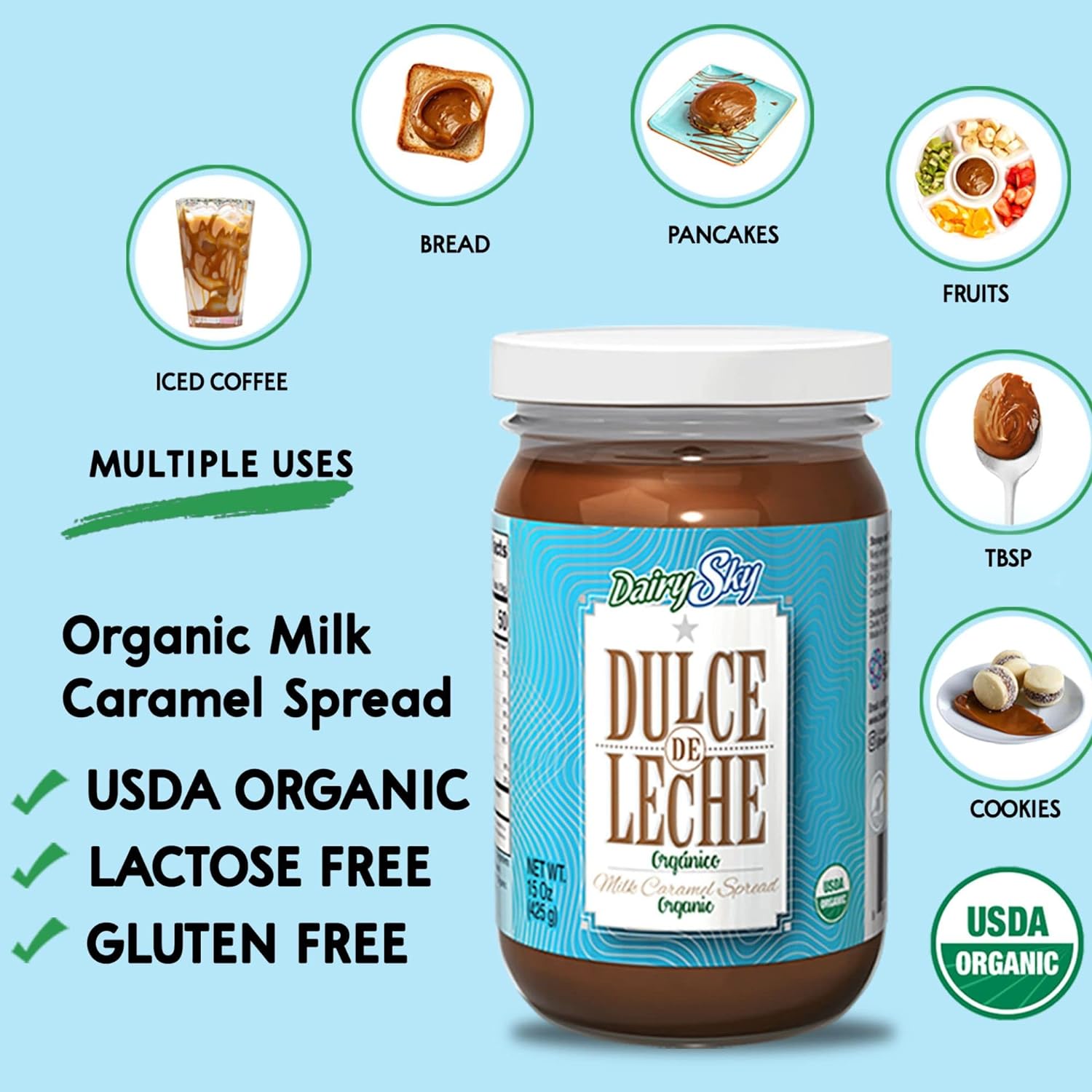 • ✅ ???????? ?? ????? ???? ???????: DairySky Dulce de Leche is a great substitute for caramel, so much so that it will most likely be preferred in the recipe. Quick and simple to use and delicious with a numbers of fruits, pastries and ice creams. Use directly from the container. This spread can be used as finishing touch or spread for cake, cookies, and other desserts.