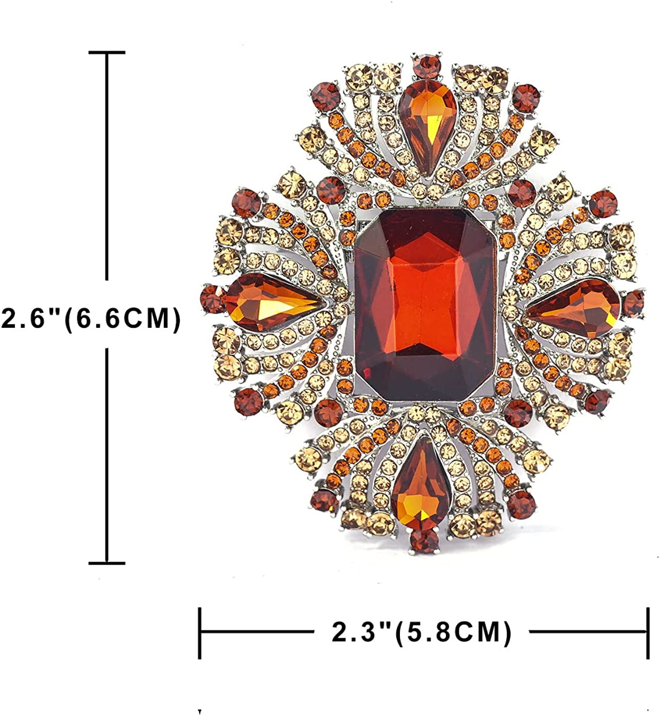 Brooch Size:2.6"*2.3"(6.6CM*5.8CM).The size of the crystal in the middle:(0.7"*1.0").