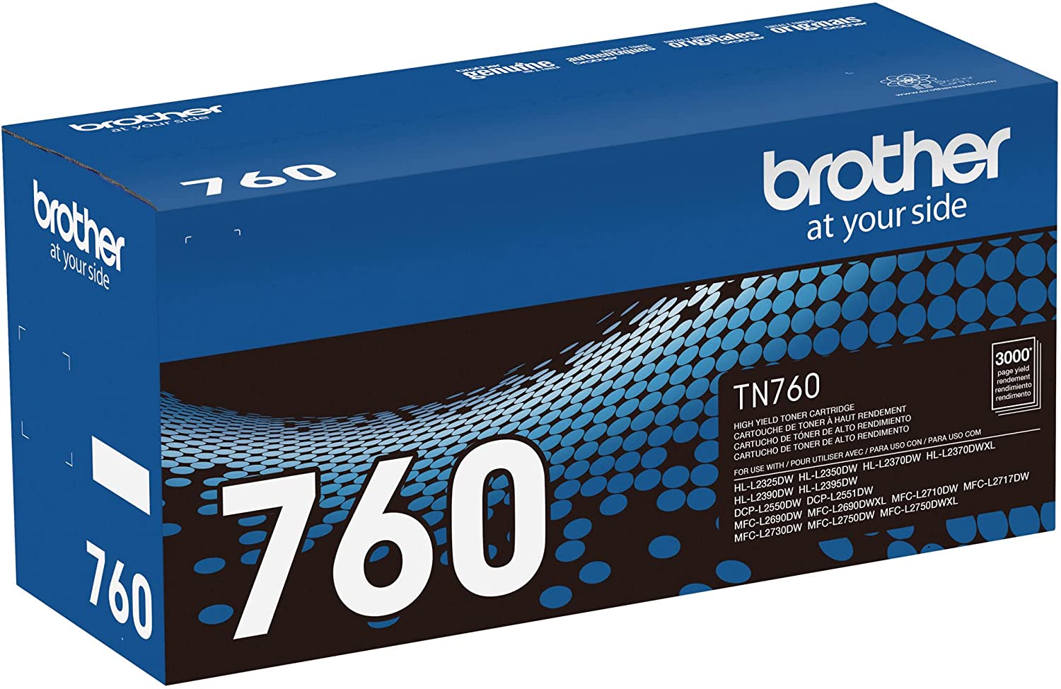 The use of Brother Genuine replacement high yield toner cartridges like the TN 760 not only produces sharp, black and white pages with the quality you expect from Brother products – it also increases productivity and can reduce downtime when fulfilled through Amazon Dash Replenishment. The Brother TN 760 replacement laser black toner cartridge is for use with 9 Brother products. This professional cartridge is intelligently engineered to work in seamless unison without compromising the quality of the print. Upon activation, Amazon Dash Replenishment–eligible Brother printers will seamlessly order Brother Genuine supplies through your Amazon account and ship them directly to your door. The Brother Genuine TN 760 replacement high yield black toner cartridge can print approximately 3,000 pages(1). Once you’ve ordered your replacement cartridges from Amazon, you can feel comfortable knowing that Brother has an environmentally smart solution. Brother is dedicated to being environmentally responsible and offers disposal programs for properly discarding its cartridges. This replacement cartridge is for use with the following Brother printers and all in ones; DCPL2550DW, HLL2350DW, HLL2370DW, HLL2370DWXL, HLL2390DW, HLL2395DW, MFCL2710DW, MFCL2750DW, MFCL2750DWXL.