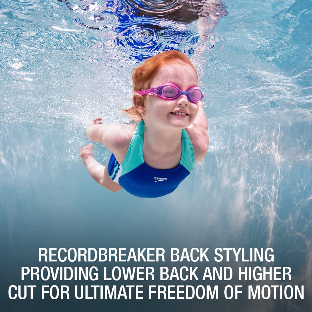 Speedo Boy's Size Charts Speedo Girl's Size Charts Swim laps around the competition in the Infinity Splice One-Piece Swimsuit. Xtra Life Lycra® Fiber: • Lightweight stretch fabric offers a wider range of motion in and out of the water.• Engineered to last over 200 hours in the pool.• Resists sagging, suntan lotion, oils, and chlorine. UV50+ Block the Burn protection from the sun's harmful UVA and UVB rays. Scoop neckline. Racerback design with cutout detail. No-Wedgie Worries offers silicone gripper at back legs for stay-put comfort. Moderate-rear coverage. 82% polyester, 18% spandex;Lining: 100% polyester. Hand wash, line dry. Imported. Measurements: One Piece Length: 19 in Product measurements were taken using size 8 Big Kids. Please note that measurements may vary by size. If you're not fully satisfied with your purchase, you are welcome to return any unworn and unwashed items with tags intact and original packaging included.