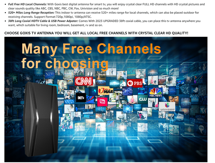 • ✅ FULL HD CHANNELS: With Goxis UPGRADED 2023 TV antenna, no more need to pay a HUGE BILL for TV anymore! Our digital tv antenna can receive FULL HD FREE LOCAL Channels like ABC, CBS, NBC, PBC, Fox and SO MUCH MORE. With amplified tv antenna start to access all of the news, sitcoms, kids and sports programs! ADVANCED TOOL FOR LIFE TO RECEIVE THE CHANNEL WITHOUT MONTHLY BILL!
