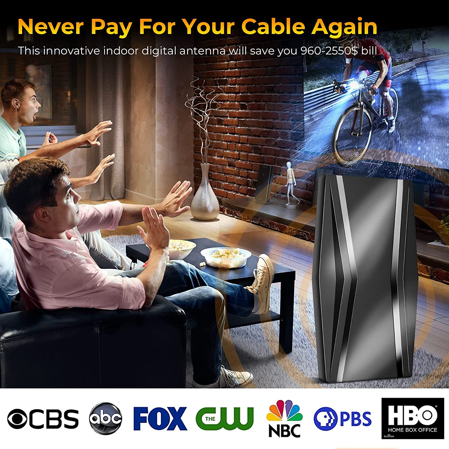 2023 Upgraded TV Antenna for Smart tv Up to 520+ Miles, Digital TV Antenna with Amplifier and Signal Booster-Amplified HD Antenna for TV Indoor/Outdoor-38ft Coax Cable - Support 4K 1080p
