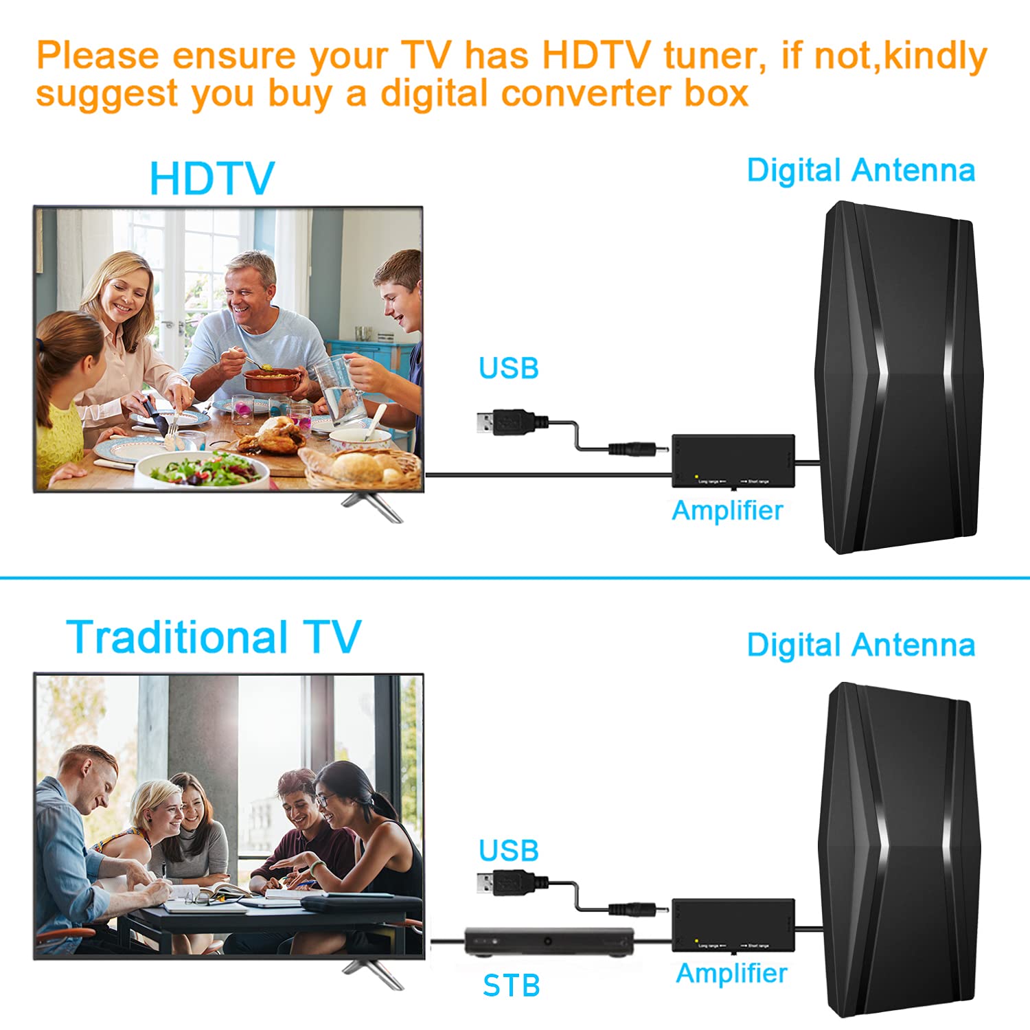 • ✅ Note: Please make sure to switch the amplifier to "short range" in case your house is very close to the broadcast tower.