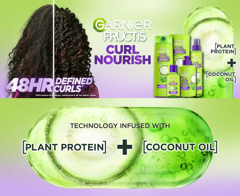 Hair is almost entirely made up of protein, which gives hair its strength. Paraben-free Fructose formulas with Active Fruit Protein, an exclusive combination of citrus protein, Vitamins B3 & B6, fruit & plant-derived extracts and strengthening conditioners, are designed for healthier, stronger hair. Rich, quenching Fructose Triple Nutrition Curl Nourish Butter Cream leave-in treatment, with Coconut, Jojoba & Macadamia Oils, replenishes for long lasting moisture. Hair is stronger, curls more defined, shinier & softer.