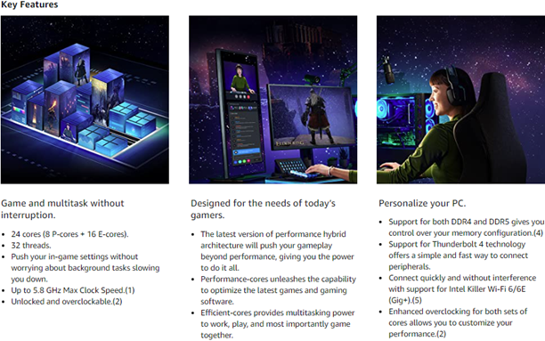 • 24 cores (8 P-cores + 16 E-cores) and 32 threads. Integrated Intel UHD Graphics 770 included