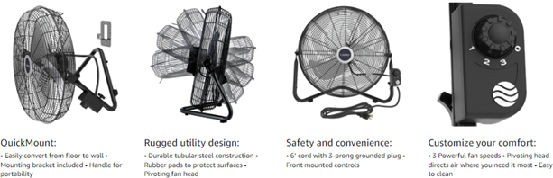 | Recommended Uses For Product | Cooling, Ventilating, Air Circulation |