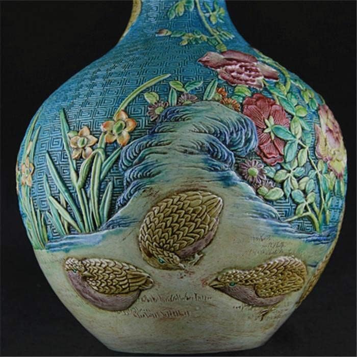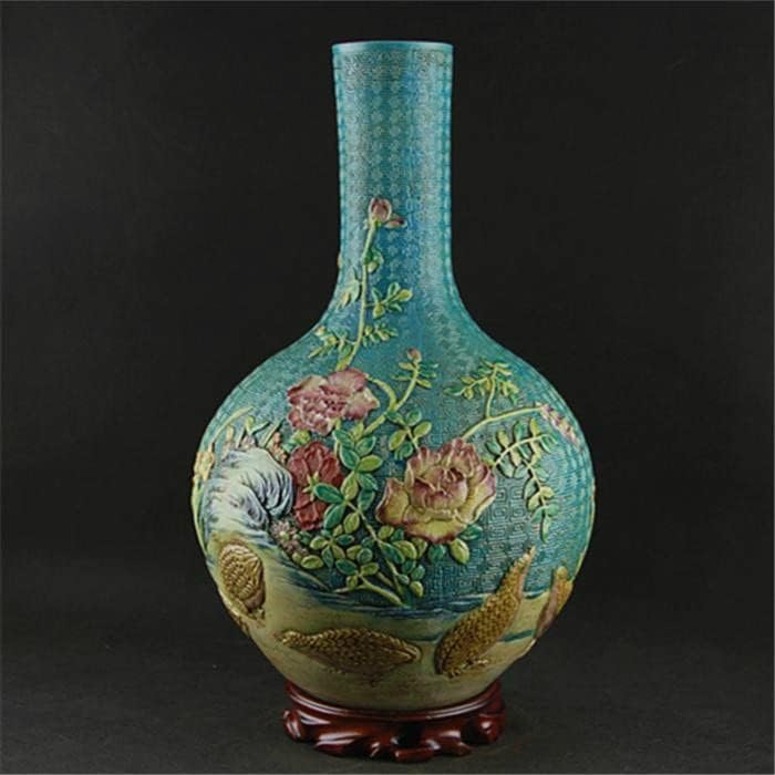 ZHYH Classic Green Ceramic Vase Embossment Antique Porcelain Flower Vase for Decoration