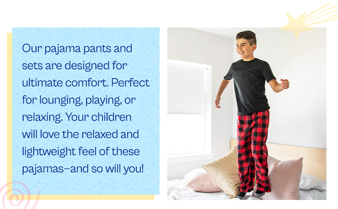 • Boys' Fashion Pajamas: Our 3-pack of printed or plaid pajama for boys adds a dash of fun flare to your child's bedtime. Your son won't want to wear anything else after wearing these soft pajamas for boys!