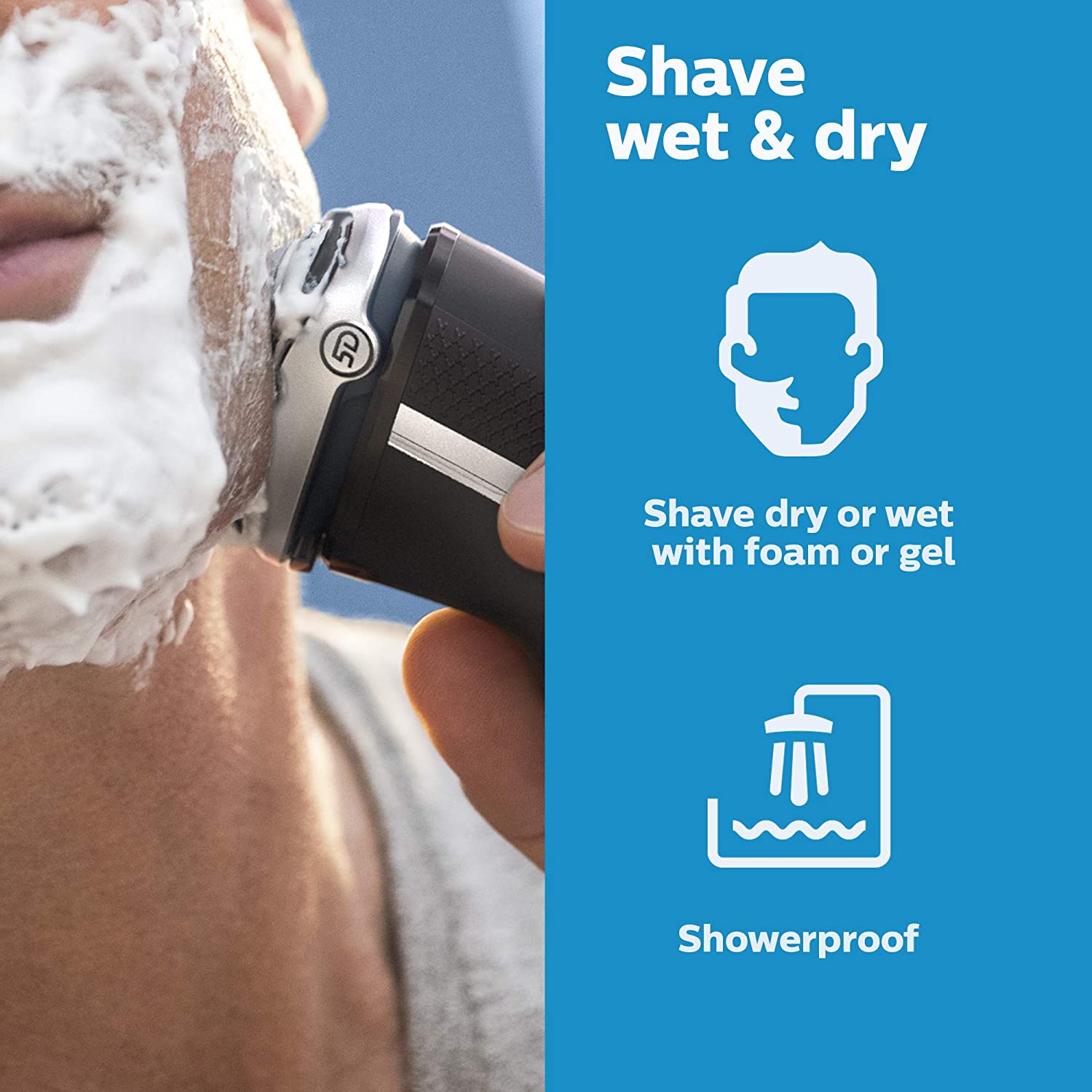 • Get a convenient dry shave or a refreshing wet shave with gel or foam, even in the shower