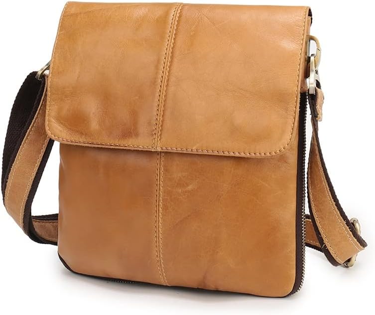 ZLXDP Leather Men's Bag Retro Cowhide Men's Crossbody Bag Vertical Clamshell for Men Shoulder Bag