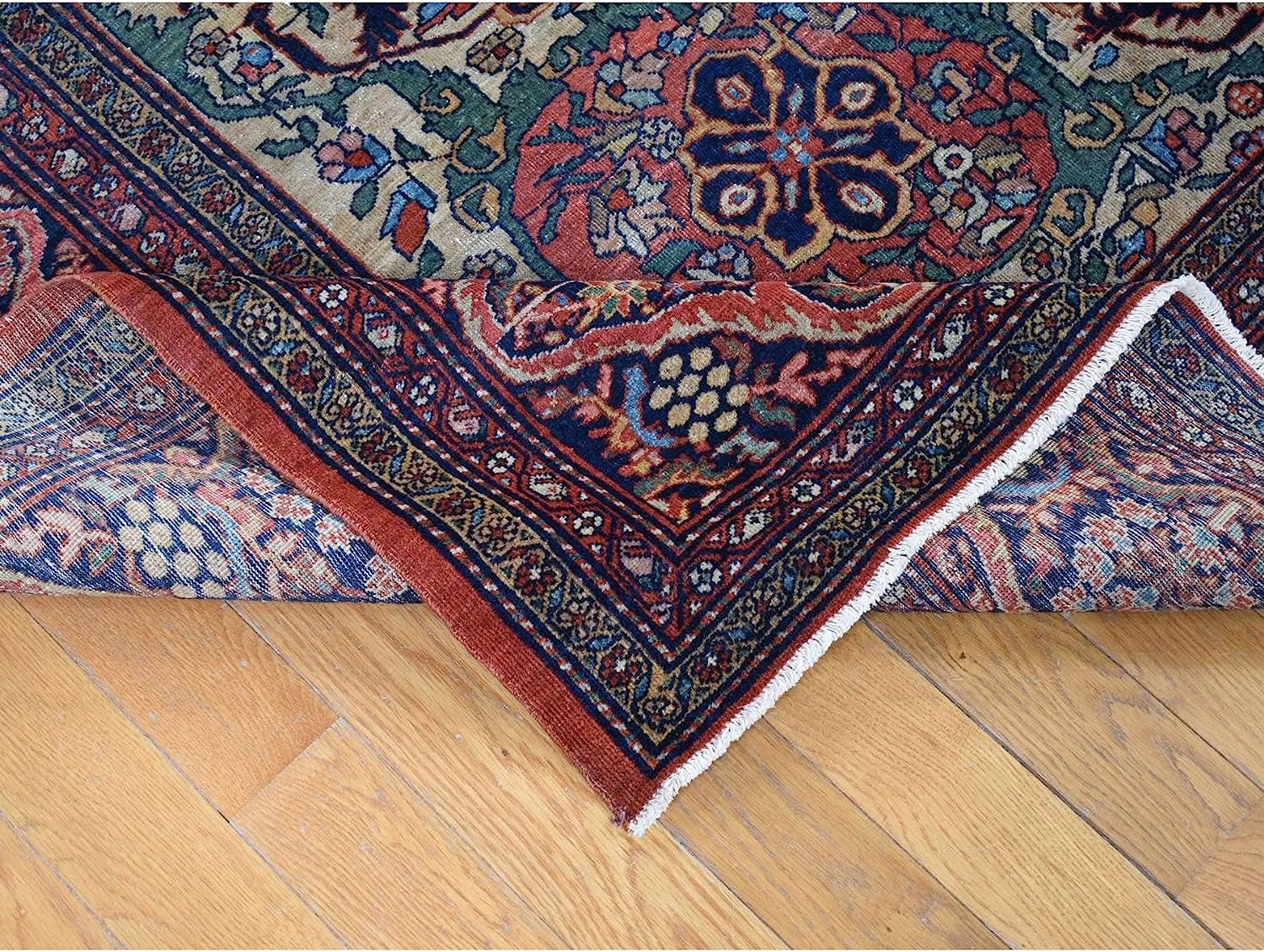 Shahbanu Rugs Barn Red, Antique Persian Feraghan Sarouk, Soft Wool Hand Knotted Rug (9'0" x 12'0")