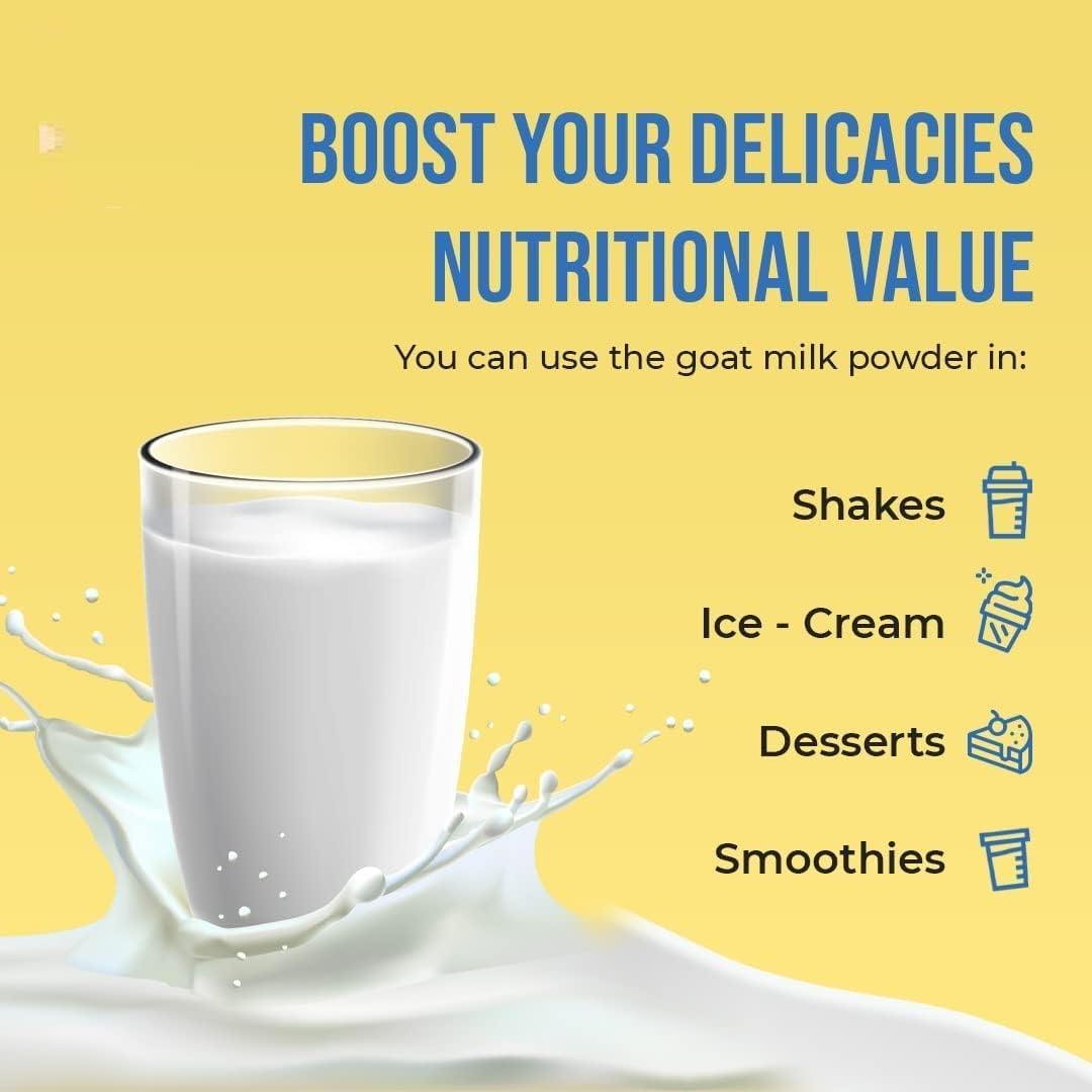 • Overall Health Benefits: Tahr Goat Milk Powder helps to build bone density, boost overall immunity, reduce cholesterol, improves digestion, lower your risk of diabetes, support weight, prevent fat loss and reduce high blood pressure.