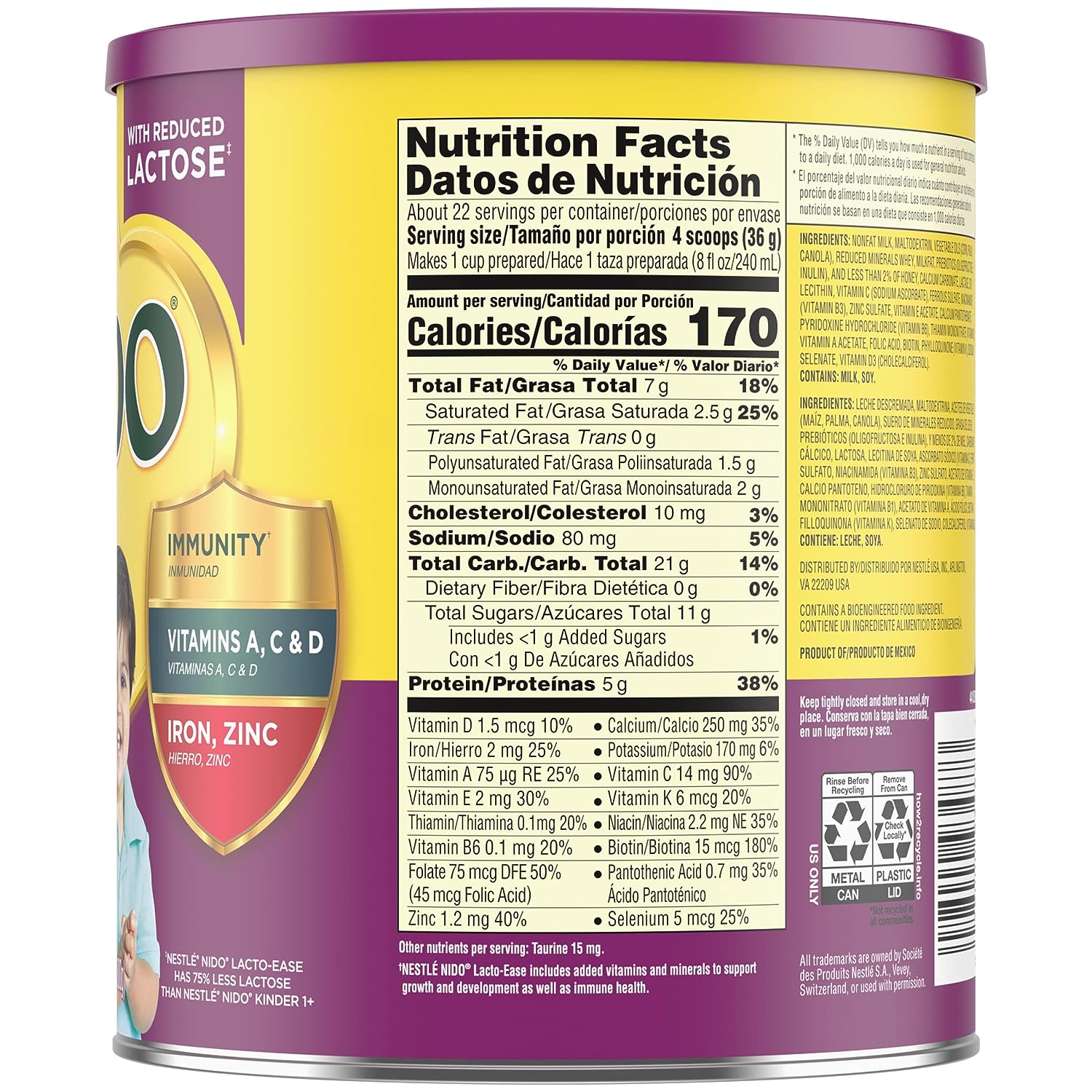 NIDO Lacto-Ease contains added vitamins and minerals to support growth and development as well as immune health